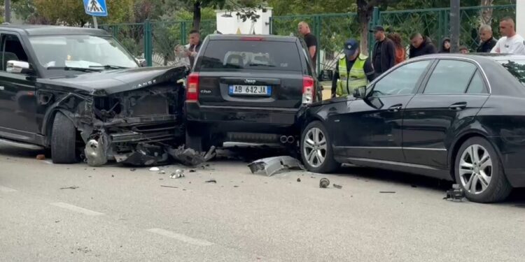 Siç shihet edhe nga pamjet katër automjete janë përplasur me njëra- tjetrën dhe si pasojë dy persona janë lënduar.