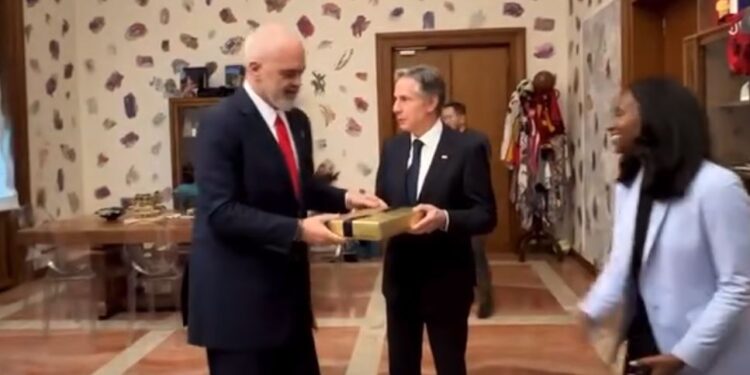 Kryeministri Edi Rama ka ndarë mëngjesin e sotëm disa momente nga vizita e sekretarit Amerikan të Shtetit, Blinken dje në Tiranë.