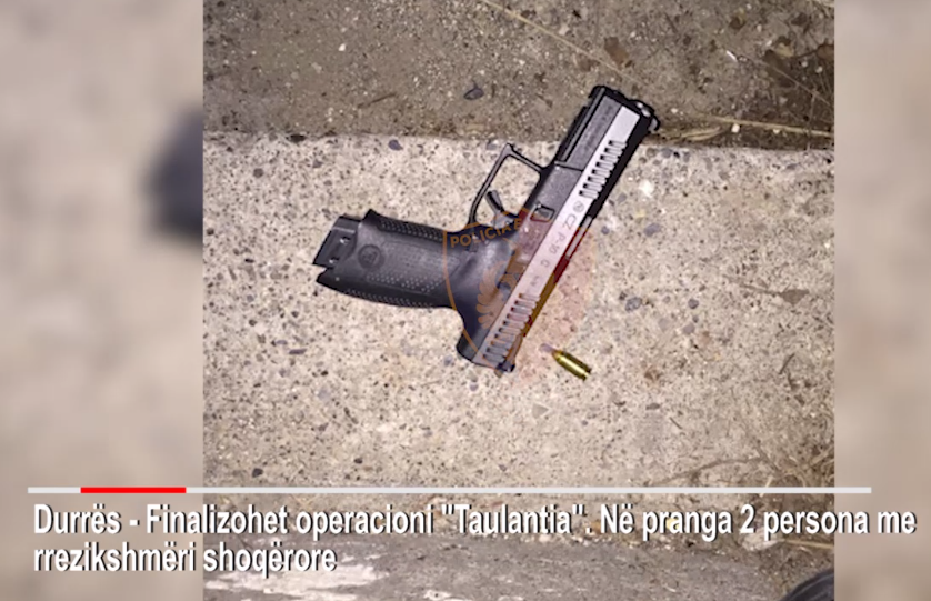 “Gjatë operacionti policor të koduar “Taulantia”, Policia kap dhe arreston dy persona me rrezikshmëri të lartë shoqërore, me precedentë penalë të mëparshëm në fushën e veprave penale kundër personit dhe armëmbajtjes pa leje. Njëri prej tyre, i cili kishte dhe armë zjarri me vete ishte me masë sigurie “Arrest në shtëpi”, për armëmbajtje pa leje”, tha policia.