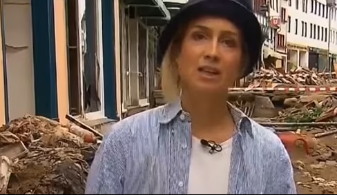Gazetarja e RTL Susanna Ohlen, u kap nga kamerat duke u lyer me baltë në Bad Munstereifel, një vend ku ajo supozohet se po ndihmonte në pastrimin e qytetit pas shkatërrimit nga përmbytjet masive që kanë përfshirë vendin.