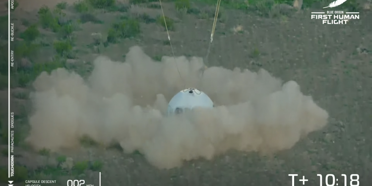 Miliarderi amerikan Jeff Bezos ka realizuar me sukses fluturimin e parë, së bashku me te ishte edhe vëllai i tij Marc, një 18-vjeçar holandez dhe një amerikane në pension.