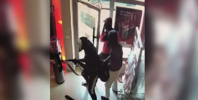 Ky është moment, i siguruar nga Top Channel kur tre persona të veshur me të zeza me maskë Halloween-i në fytyrë dhe të armatosur me kallashnikovë grabitën filialin e një banke në Koplik.