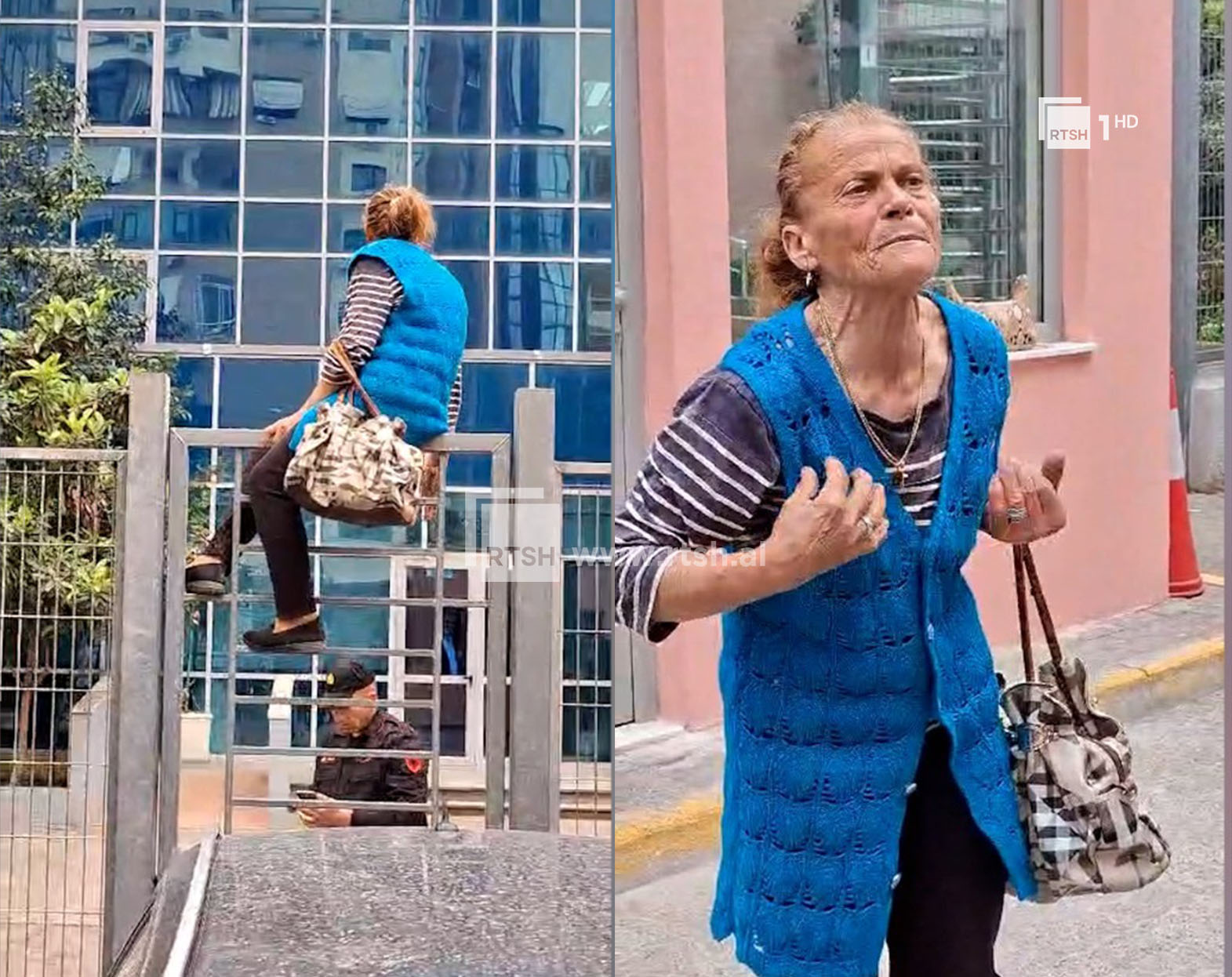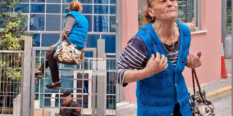 E moshuara ka hipur nga hekurat për t’u futur brenda SPAK-ut. Është nxjerrë jashtë me forcë nga një punonjës i sigurisë dhe më pas sërish ka hipur mbi hekura për të hyrë brenda institucionit të akuzës, duke thirrur “se i kanë marrë pronën” dhe duke akuzuar kryebashkiaken e Kurbinit Majlinda Carën.