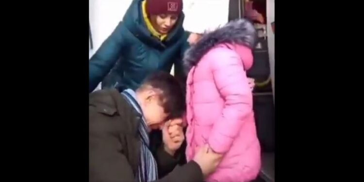 Ai përkëdhel vajzën duke i uruar shëndet dhe duke i thënë se gjithçka do të shkojë mirë. Ukrainasi qan me ngashërim para saj e cila gjithashtu përqafon mes lotësh babain.