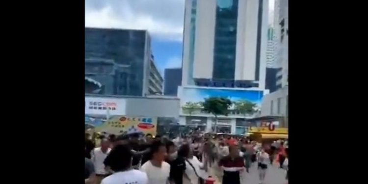 Një ndërtesë prej më shumë se 70 katëshe në Kinë është evakuuar nga autoritetet pasi papritur filloi të lëkundej. Të gjithë qytetarët brenda dhe jashtë saj filluan të vrapojnë të frikësuar ndërkohë që përplasen me njeri-tjetrin.