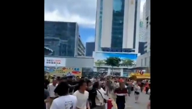 剛剛中午時分,位於深圳華強北,樓高73層的賽格電子大廈突然搖晃,原因不明也沒地震!樓宇內人群和樓下人群紛紛逃命! pic.twitter.com/aoixkH6OeY