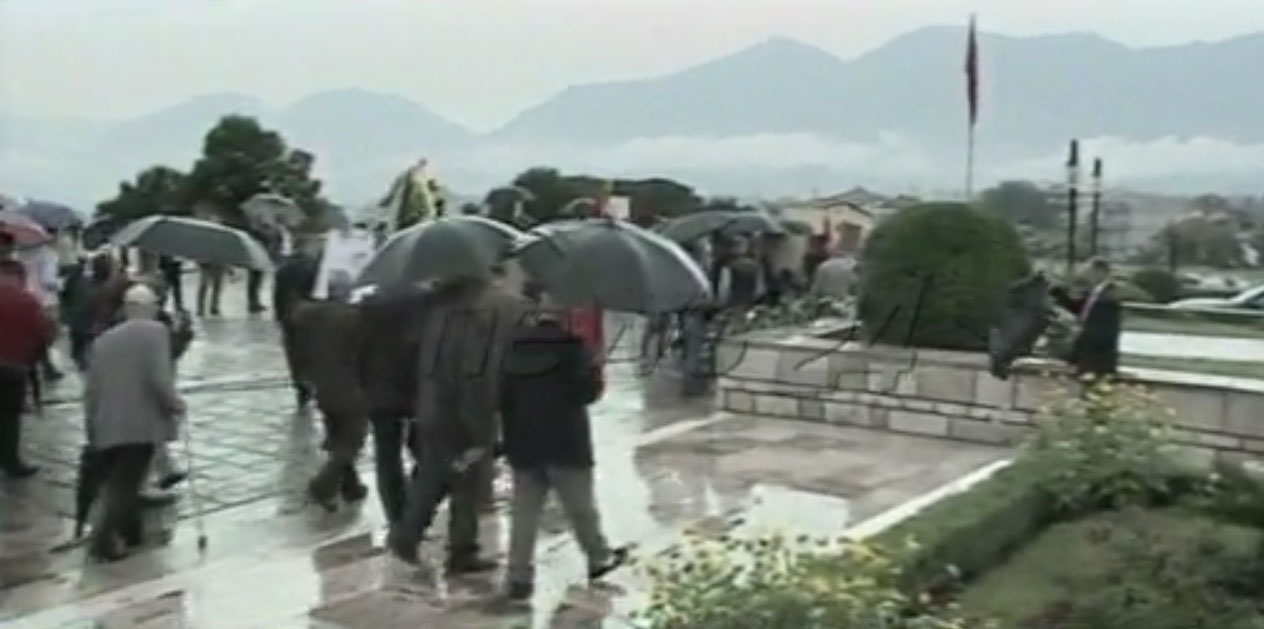 Në homazhe ishin edhe disa fanatikë të ish-diktatorit Enver Hoxha të cilët mbanin pankarta dhe fotot e tij.