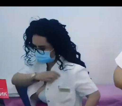 Infermierja, nisi të heqë xhaketën e punës për të marrë vaksinën anti-COVID, ndërsa ky detaj nuk i ka shpëtuar ekipit të xhirimit, që e kanë vendosur në fokus të kamerës këtë moment. Video është shpërndarë me shpejtësi në rrjete sociale dhe ndjekësit me humor kanë thënë: Ky është edicioni më i shikuar i lajmeve në RTS”./m.j