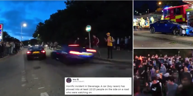 Të paktën 17 persona janë plagosur pasi dy makina që po bënin gara në rrugët e Stevenage në Angli u përplasën mes tyre dhe dolën nga rruga, duke marrë përpara publikun që ishte mbledhur për të shijuar spektaklin.