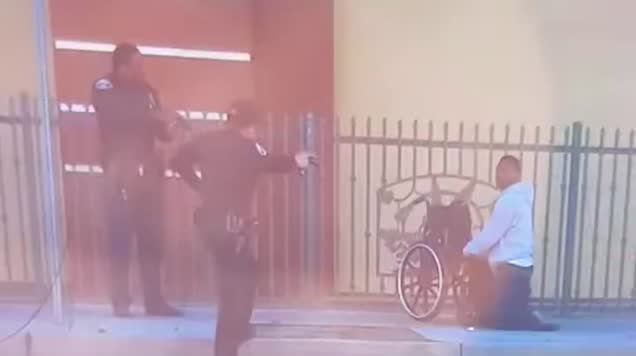 Disa policë në Kaliforni kanë qëlluar disa herë një person me këmbë të amputuara, teksa ai mbante një thikë në dorë dhe u mundua të largohej.