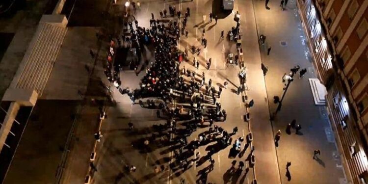 Report Tv sjell pamjet me dron nga protesta e çdo dite të hënë poshtë kryeministrisë të Partisë Demokratike.