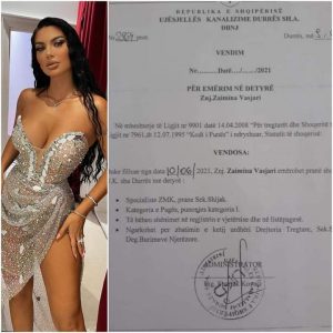 Ditën e sotme u bë e ditur se Zaimina Vasjari është emëruar specialiste në drejtorinë e Ujësjellës Kanalizimeve në Durrës, në degën e Shijakut.