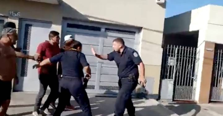 Episodi ndodhi në Berazategui. Disa burra shihen duke i bërtitur policëve dhe duke i shtyrë ata.