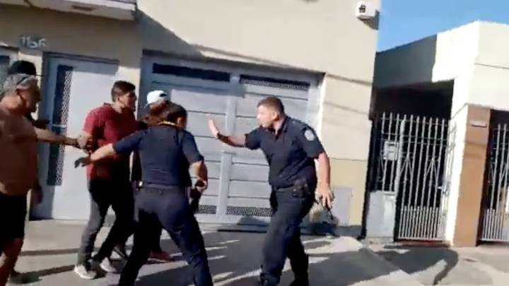Episodi ndodhi në Berazategui. Disa burra shihen duke i bërtitur policëve dhe duke i shtyrë ata.