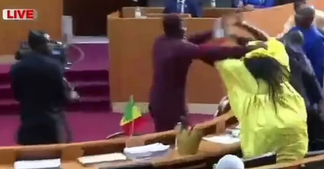 Një përleshje e ashpër ndodhi në Parlamentin e Senegalit ditën e djeshme, gjatë seancës plenare ku po diskutohej për projketbuxhetin. Siç shihet edhe në video, deputeti ngrihet nga vendi, shkon te kolegia e tij dhe e godet me shuplakë.
