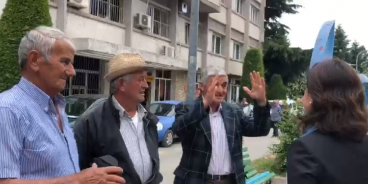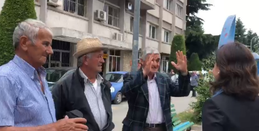 Tre të moshuar nga Pogradeci janë ngritur në këmbë duke kërkuar drejtësi në vend teksa pranë tyre kaloi ambasadorja amerikane Yuri Kim. Kjo e fundit ishte duke ecur tek Pedonalja e qytetit bashkë me kryeprokurorin Olsian Çela, ndërsa tre të moshuar u ngritën duke i folur.