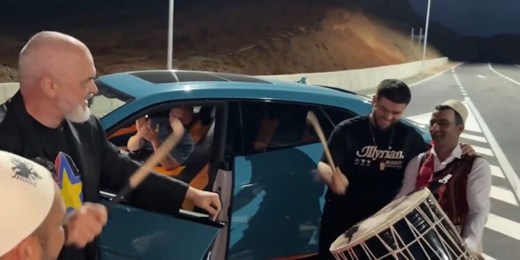 I shoqëruar nga muzika e vallet në sfond, si dhe reperi Nizy, kryeministri Edi Rama i ka rënë dhe vetë daulles. Rama ka inauguruar edhe rrugën Maqellarë-Peshkopi, segmenti i fundit që përmbyll Rrugën e Arbrit.
