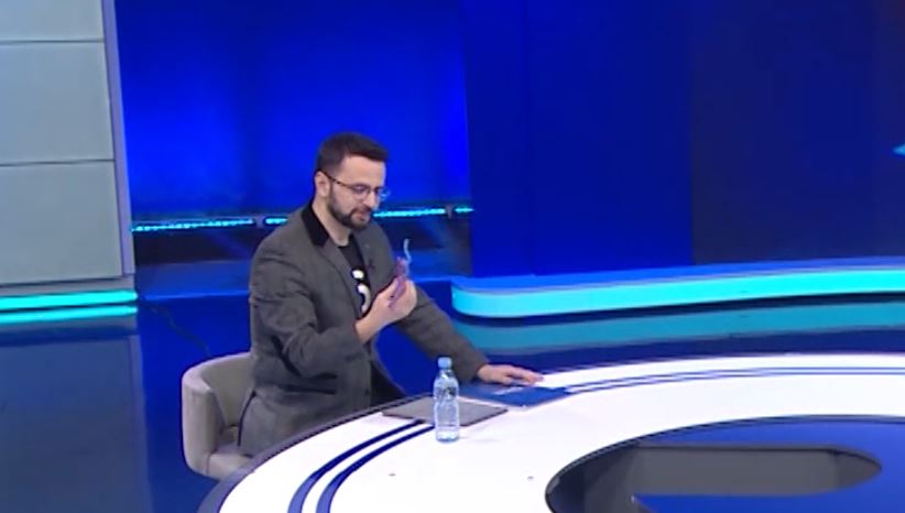 Shabani kishte sjelllë në studio edhe një merimangë me ngjyrë blu dhe mavi e cila sipas tij, simbolizon dy forcat kryesore politike që e kanë shtrirë rrjetën e tyre në çdo fushë të jetës.