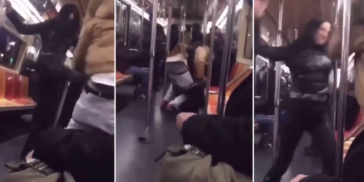 Një përleshje shokuese mes një burri dhe një gruaje është shënuar në një metro të Nju Jorkut.