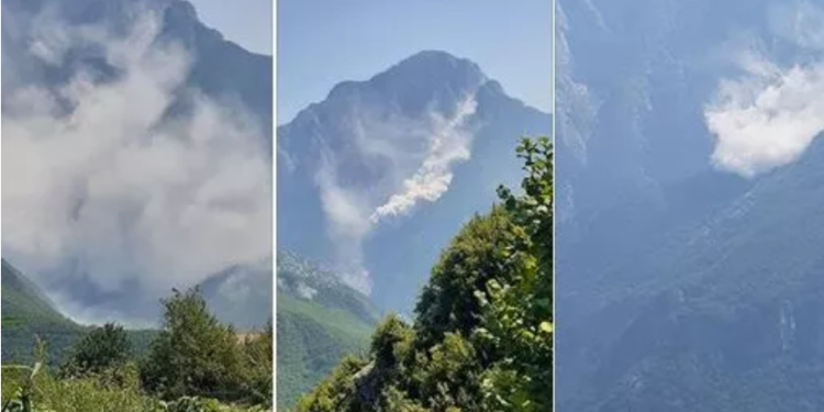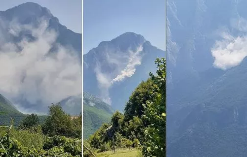 Maja e një mali në Nikaj-Mërtur të Tropojës është shkëputur mesditën e sotme. Report Tv sjell pamjet e filmuara nga qytetarët, teksa maja e malit shkëputet.