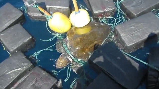 Pakot e kokainës ishin të lidhura mes tyre me litarë. Por abulii nuk mbaron me kaq. Ata gjetën mes rrjetës së litarëve një breshkë të madhe uji e cila ishte bllokuar.