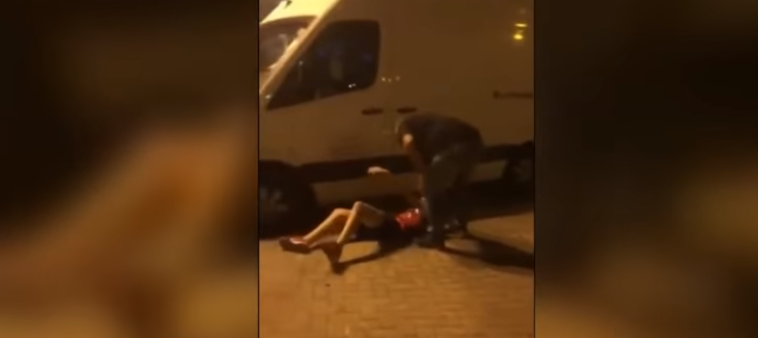 Në videon e transmetuar nga mediat greke shihet 12-vjeçari shqiptar i shtrirë në tokë dhe babai i shokut të klasës i cili e dhunon.