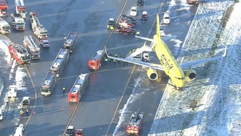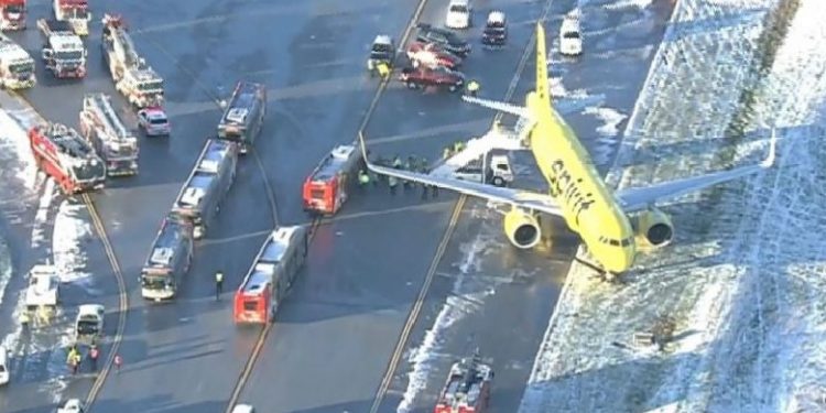 Një aeroplan i Spirit Airlines ka rrëshqitur nga pista në Aeroportin Ndërkombëtar të Thurgood Marshall në Baltimore/Washington (BWI) të enjten në mëngjes pasi një stuhi e fuqishme dimërore krijoi kushte të vështira.