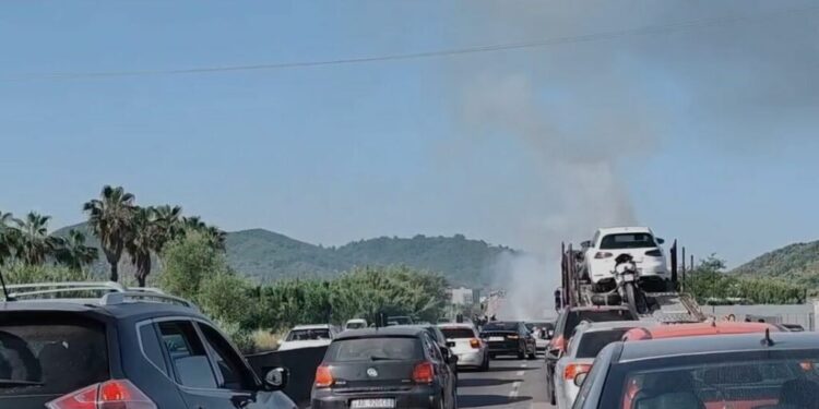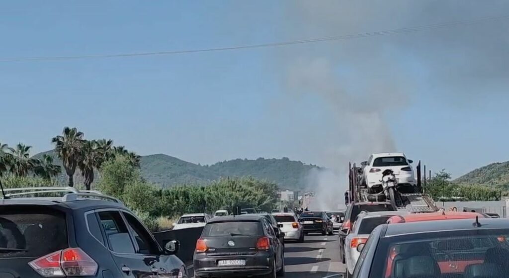 Nje automjet tip opel është përfshirë nga flakët në autostradën Tiranë-Durrës.