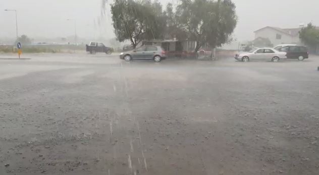 Sikurse mund të shihet edhe nga video, reshjet e dendura të shiut vështirësojnë lëvizjen e automjeteve në rrugë.
