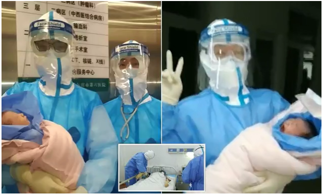 Një vajzë e vogël lindi në karantinë nga mjekët që mbanin rroba anti virus pasi nëna e saj ishte infektuar me koronavirusin vdekjeprurës i cili u përhap nga Wuhan.