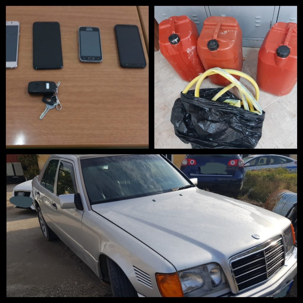 Gjithashtu, Policia ka bllokuar dhe sekuestruar automjetin me të cilin do të bëhej transporti i karburantit, si dhe materiale të tjera: 1 kilogramë kanabis, 4 aparatë celularë, bidona, etj.