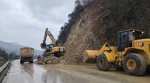 Në Bashkinë Tepelenë vijon të pastrohet aksi Tepelenë – Gjirokastër, pranë zonës së Shkallës së Zezë, ndërsa qarkullimi kryhet me një korsi.