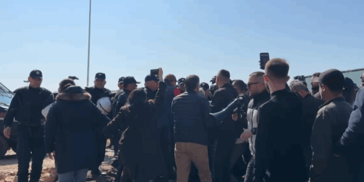 Forcat e policisë krijuan perimetrin e sigurisë për të mbrojtur punëtorët dhe makineritë, ndërsa disa protestues u shoqëruan në komisariat pas përplasjeve.