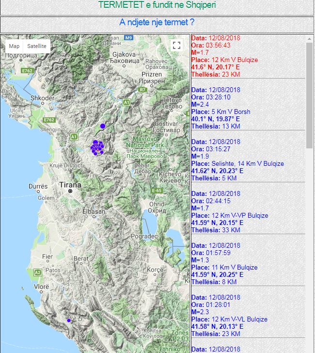 Nëntë lëkundje kanë pasur epiqendrën në Bulqizë, ndërsa një që është shënuar në orën 03: 28 të 12 gushtit ka qenë në Borsh./a.ç