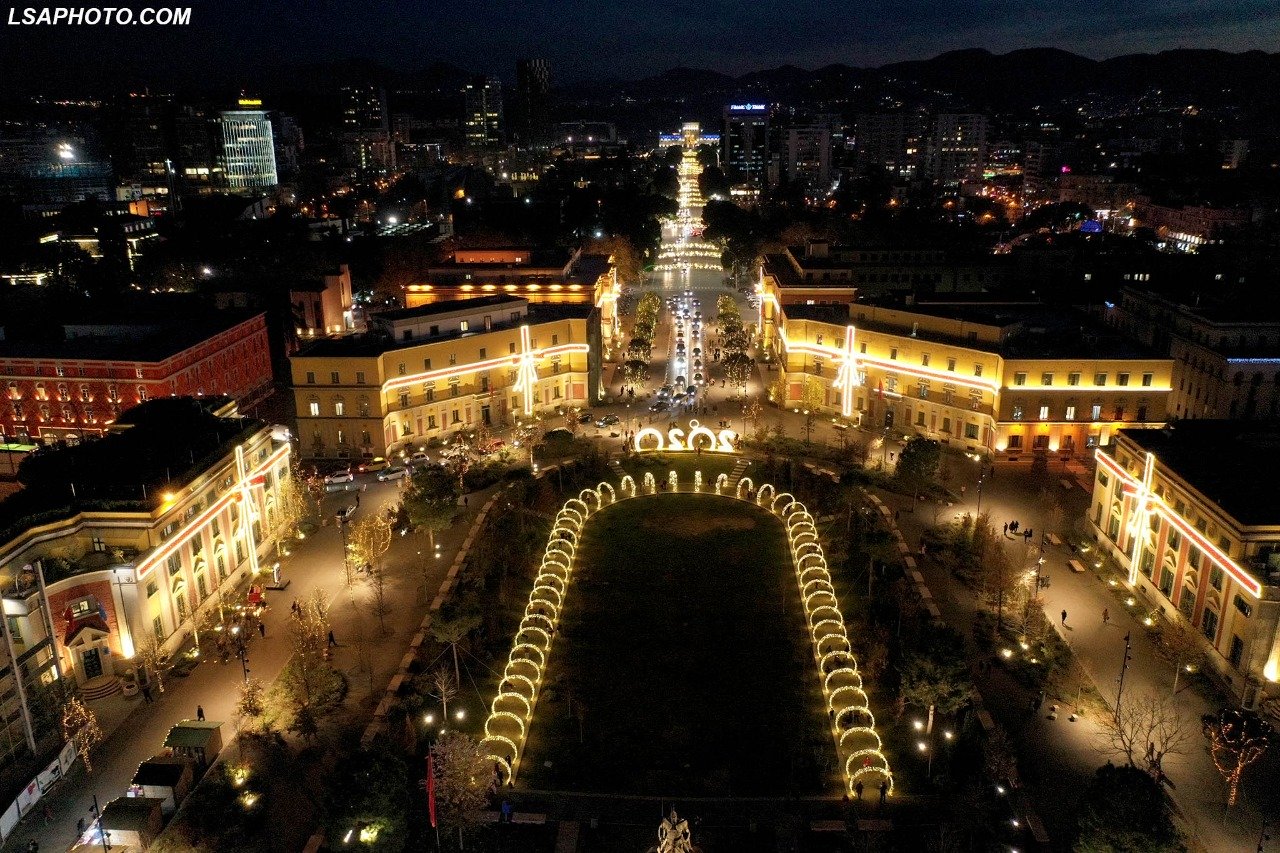 Ndriçimi i sheshit në çdo cep është vendosur në mënyrë të përsosur sa ka tërhequr edhe vëmendjen e mediave të huaja ku kanë postuar foto të sheshin nënë ndriçim.