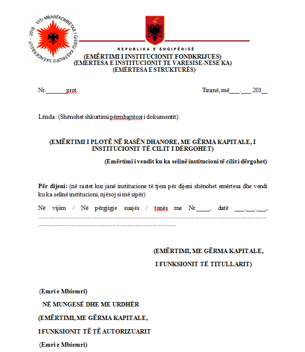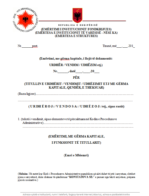 Këshilli i Lartë i Arkivave ka miratuar modelet e dokumenteve të reja administrative që do të përdoren gjatë vitit 2018. Këto modele vijnë në zbatim të vendimit të Komisionit Shtetëror për Vitin Mbarëkombëtar të Gjergj Kastriot Skënderbeut