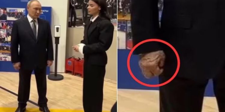 Anton Gerashchenko, ish-këshilltar në ministrinë e brendshme të Ukrainës, e ndau videon në X (më parë Twitter). “Çfarë ka me duart e Putinit në këtë video?” pyeti Gerashchenko.
