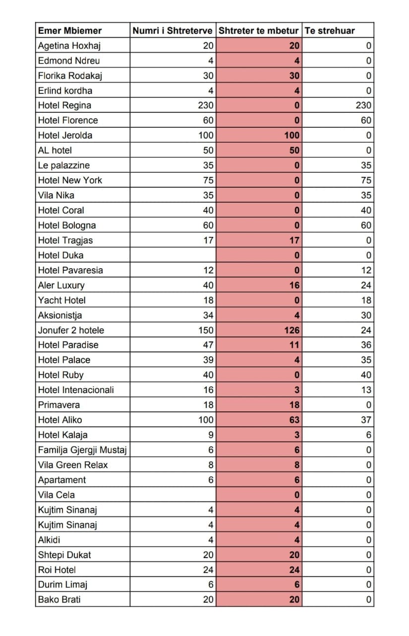 Gjiknuri shprehet se në total deri më tani në këtë qark ofrohen 1385 shtretër, kryesisht në hotele, por edhe vila e apartamente, në të cilat deri tani janë sistemuar 810 persona të prekur nga tërmeti dhe vijojnë të mbeten të lira edhe 575 shtretër.