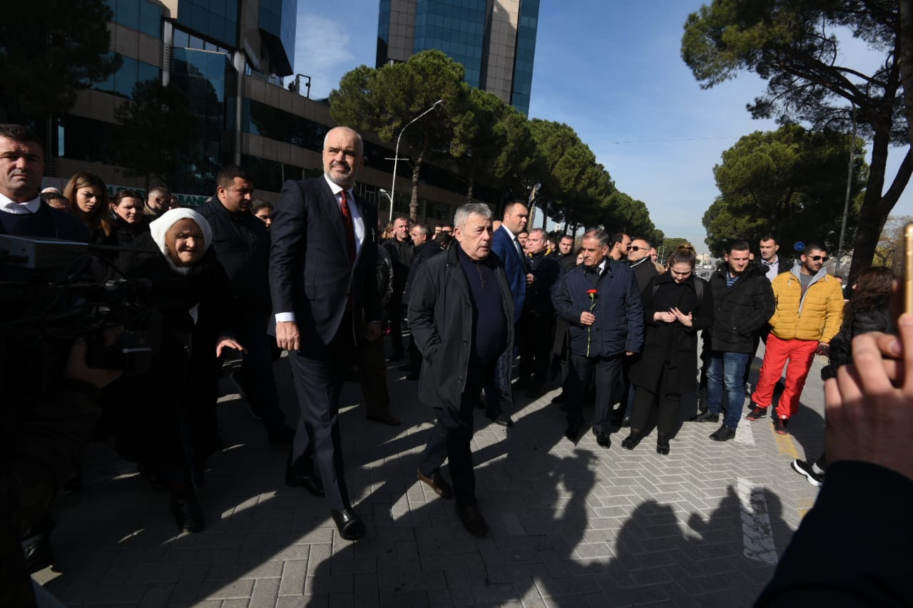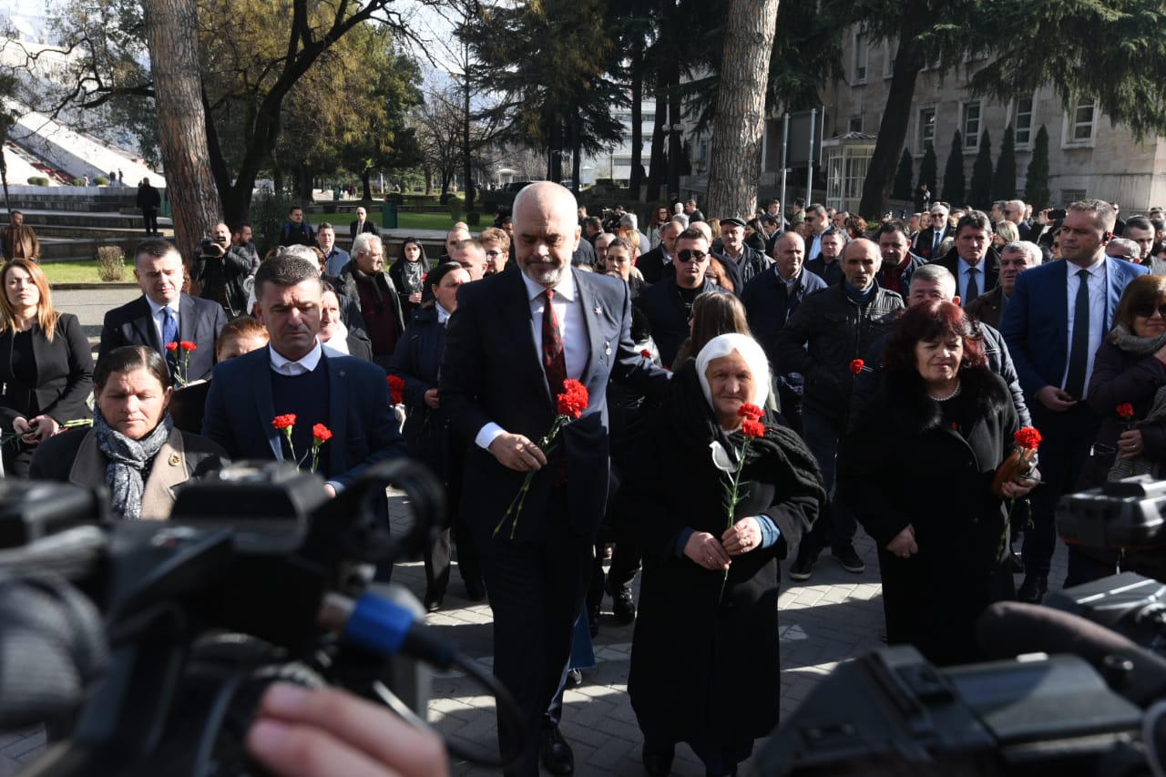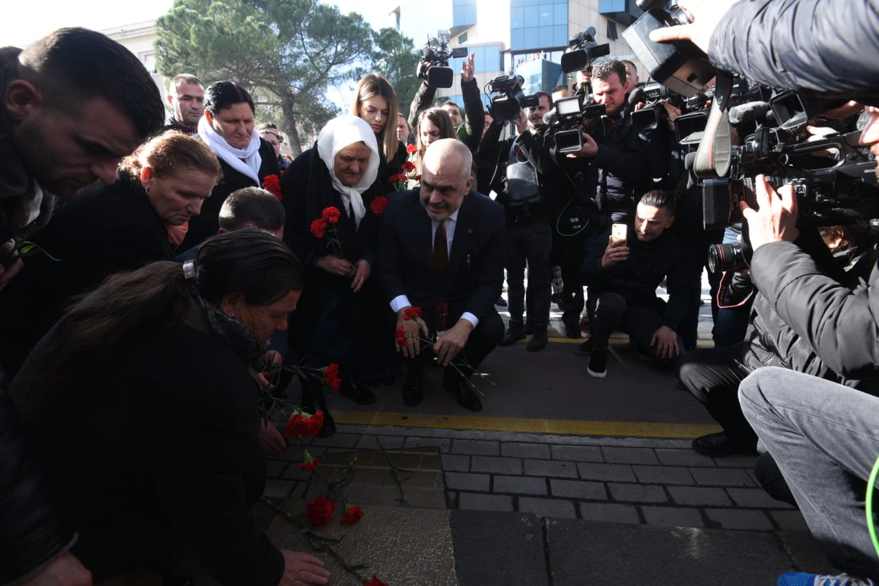 Kreu i qeverisë doli nga Kryeministria dhe i shoqëruar nga të afërmit e 4 viktimave dhe përfaqësues të tjerë të Partisë Socialiste vendosi kurora me lule në Bulevard.