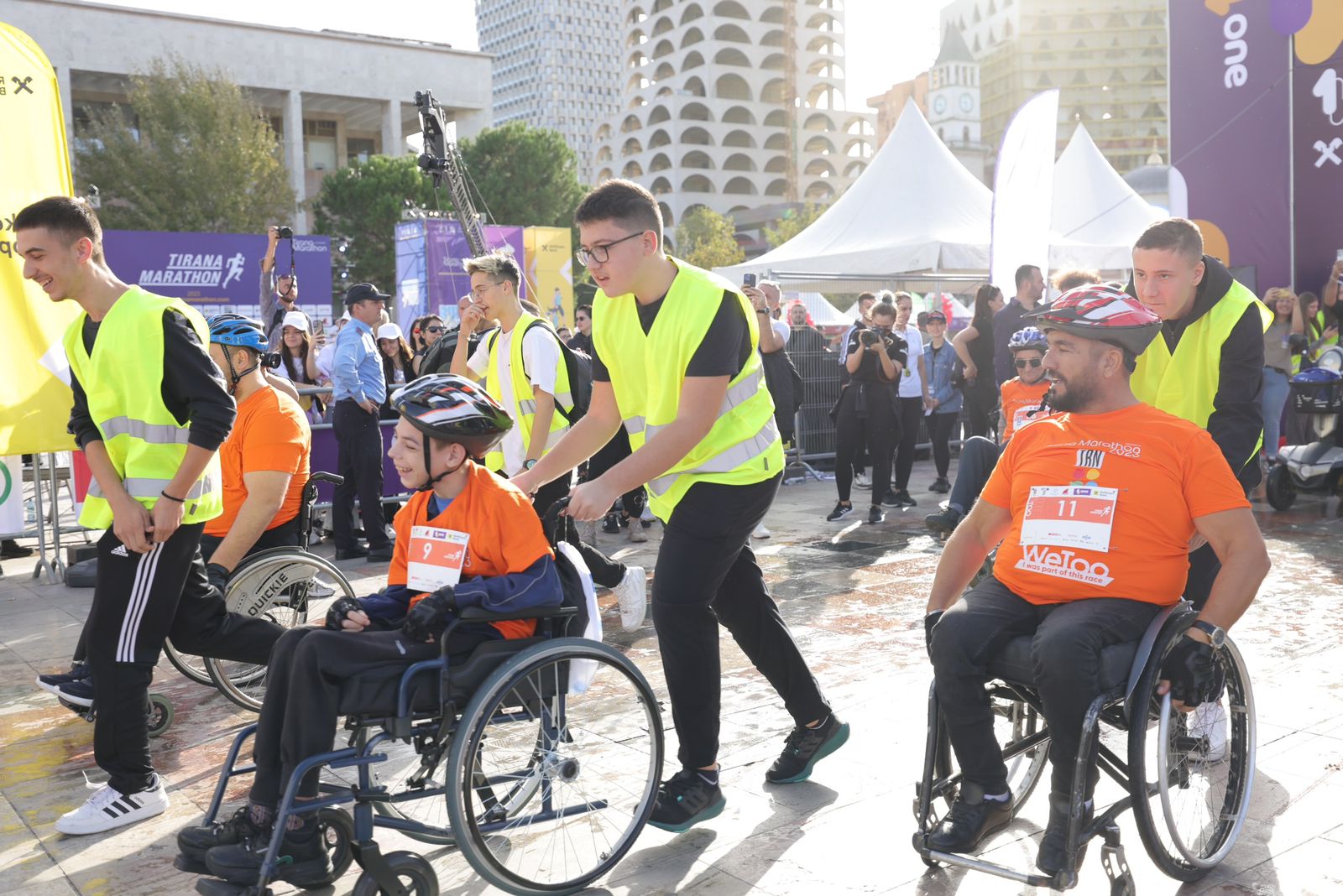 Pjesë e garës së sotme ishin edhe persona me nevoja të veçanta dhe paraplegjikë të cilët vrapuan në mbështetje të kauzës, por njëkohësisht duke dhënë edhe mesazhe shprese dhe guximi se asgjë nuk është e pamundur dhe nuk mund t’i ndalë. 22 garues me karroca u nisën nga sheshi “Skënderbej” për të përshkruar 2.3 km.