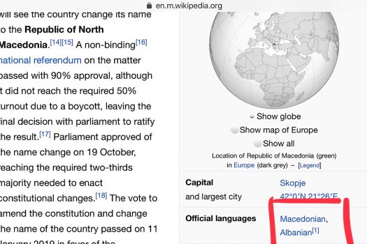 WIKIPEDIA nga sot si gjuhë zyrtare në Maqedoni përveç gjuhës maqedonase dhe alfabetit të saj cirilik ka renditur dhe gjuhën shqipe. Gjuha shqipe u shpall si gjuhë zyrtare gjatë ditës së djeshme në Maqedoni.