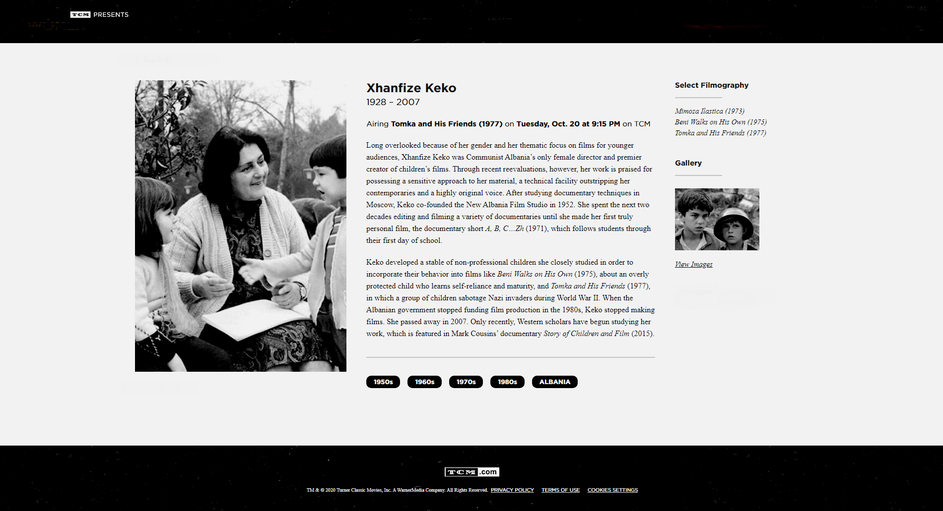 Falë këtij prezantimi, platforma on line Filmstruck, një bashkëpunim mes TCM dhe Criterion (njohur në distribucionin e filmave klasikë më të arrirë të kohërave), shfaqi interes për filmin “Tomka dhe shokët e tij” të cilin, menjëherë pas shfaqes së tij në vitin 2017, e bëri pjesë të katalogut të saj duke çertifikuar kështu vlerat artistike të regjisores Xhanfise Keko mes autorëve klasikë më të mirë të kohërave, për të cilën vitet e fundit, duhet thënë, janë shkruar edhe dhjetra artikuj e studime kushtuar autores shqiptare, publikuar në revistat më prestigjioze ndërkombëtare dedikuar kinemasë si, “Sight and Sound”, etj.