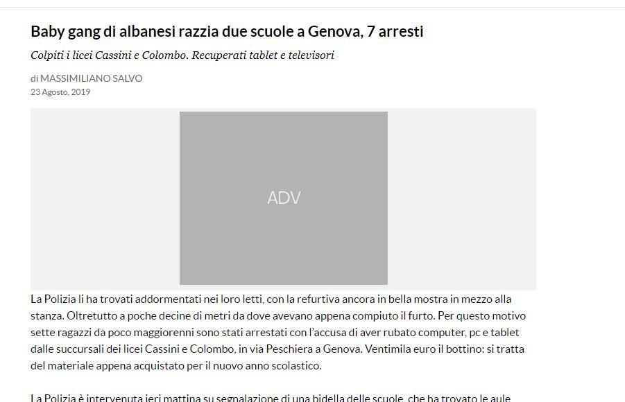 Mediat italiane shkruajnë për një ngjarje të pazakontë të ndodhur në Xhenova, ku një grup “kriminal adoleshentësh shqiptarë” kanë vjedhur në 2 shkolla kompjutera dhe të tjera materiale me vlera të konsiderueshme.
