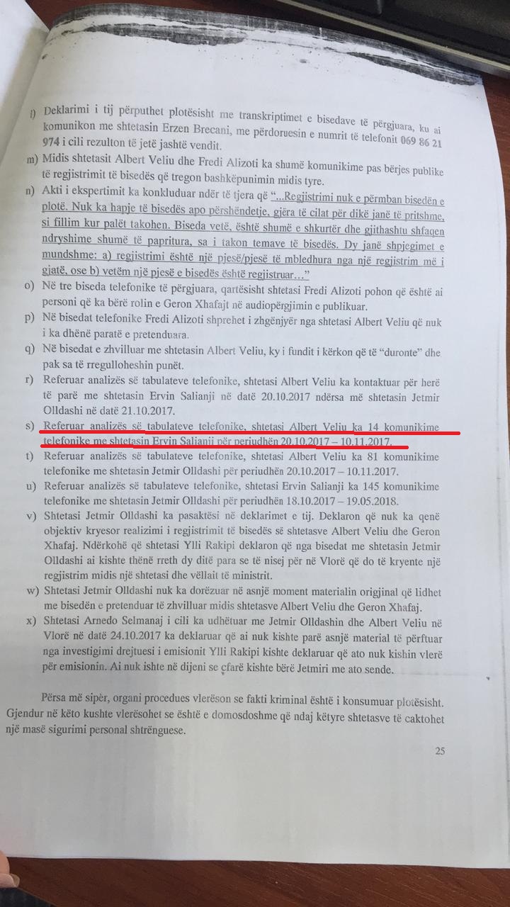 Në dosjen e publikuar nga prokuroria, rezulton se deputeti i PD Ervin Salianji ka folur 14 herë në telefon me Babalen