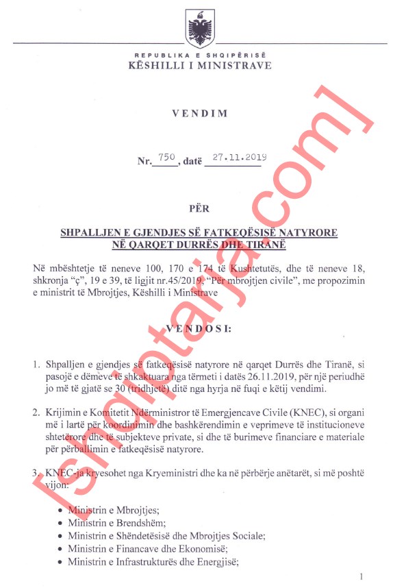 Rama tha se ky vendim nuk ishte marrë më herët për shkak se dita e djeshme ka mbajtur të mbërthyer të gjithë kabinetin e qeverisë për të ardhur në ndihmë të qytetarëve zonat më problematike. Por cfarë parashikon vendimi për shpalljen e emergjencës?