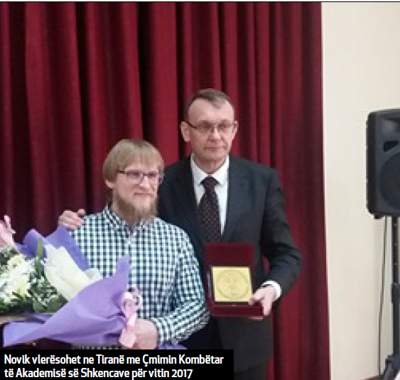 Dhe me sa duket këtë vit, pas përpjekjeve për reformimin e Akademisë, trashëgimia e shqiptarëve të Ukrainës po merr vëmendjen e merituar. Aleksandër Novik u nderua pak ditë më parë në Tiranë me Çmimin Kombëtar të Akademisë së Shkencave për vitin 2017, për studimet e tij për shqiptarët e Ukrainës.
