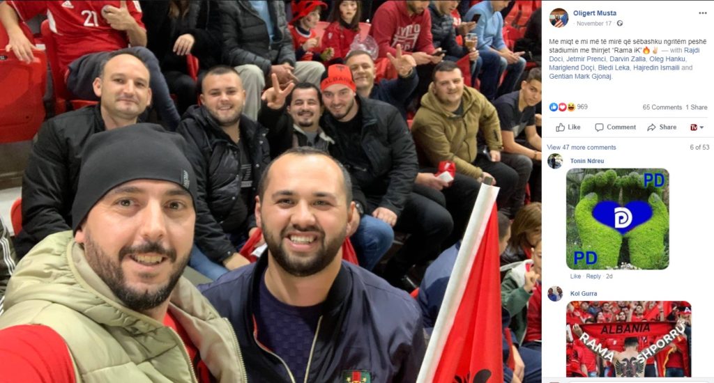Ata kanë postuar edhe foto në rrjetet e tyre sociale duke pranuar se kjo ishte një vepër e tyre. Mësohet se ata janë: Darvin Zalla, Gentjan Gjonaj, Mariglend Doçi, Jetmir Premçi, Bledjan Leka, Hajredin Ismaili, Oligert Musta dhe Oleg Hanku. Thirrjet zgjatën për disa minuta në para nisjes së ndeshjes në stadiumin e ri kombëtar.
