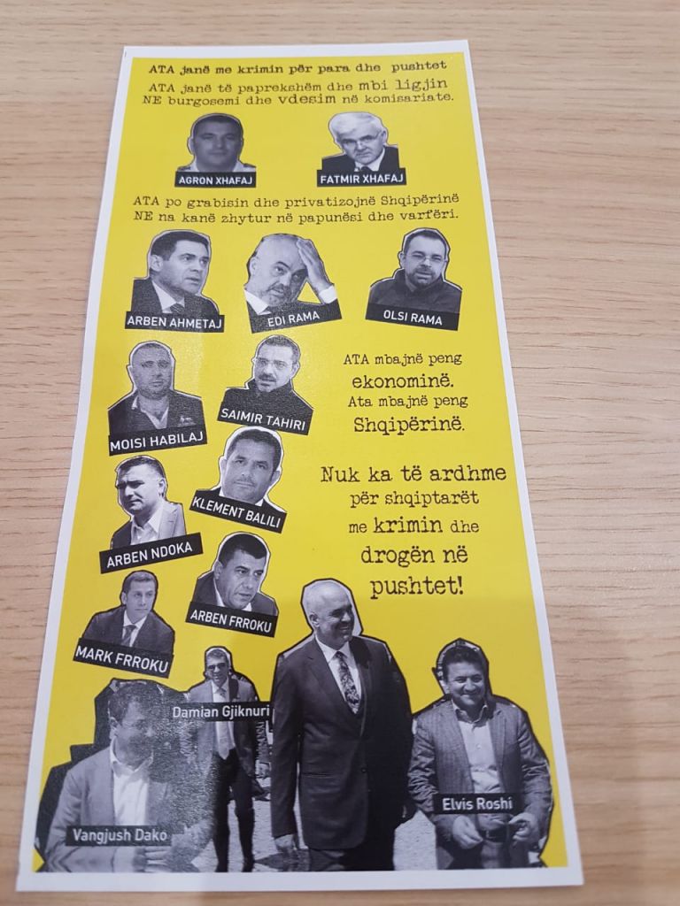 Ndërkaq burime nga mbledhja bëjnë me dije se Basha u ka kërkuar demokratëve të shpërndajnë fletëpalosje me mesazhe kundër kryeministrit Edi Rama dhe ministrave të tij.
