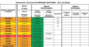 Sipas Institutit të Gjeoshkencave ditën e sotme priten reshje të dobëta qarqet: Shkodër, Kukës, Dibër, Lezhë dhe Korçë (siç tregohet në tabelë, respektivisht për secilin qark).