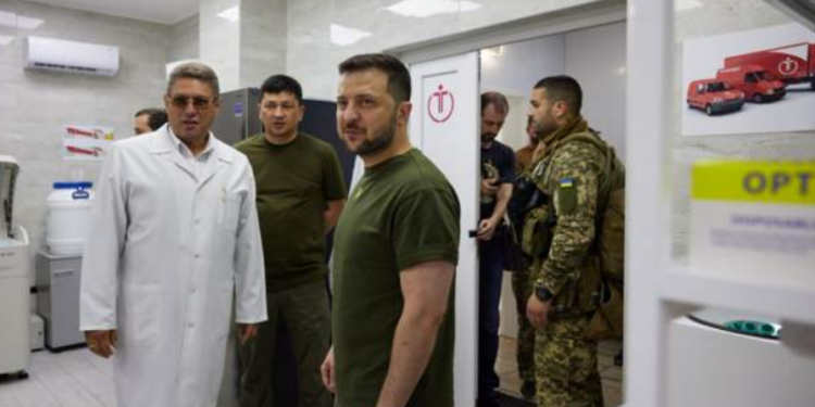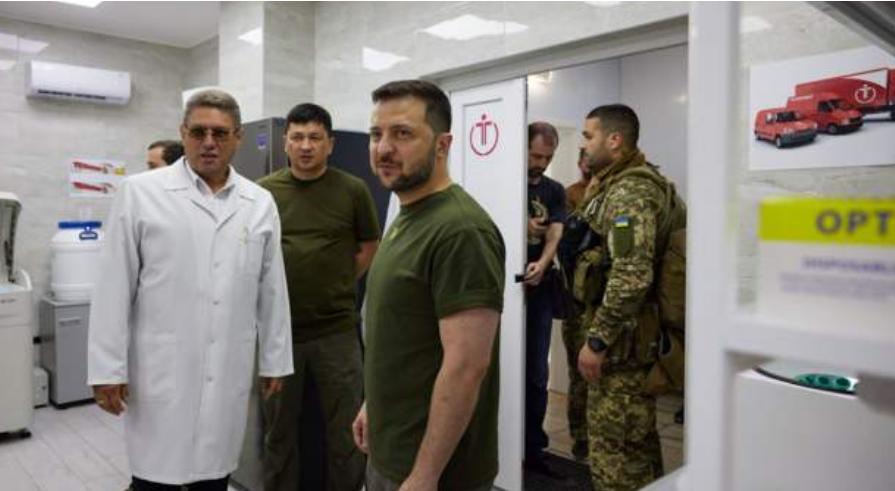 Në pamjet e publikuar nga zyra e tij, ai shihej duke parë një ndërtesë banimi të dëmtuar rëndë në qytet, ndërsa është takuar me zyrtarë rajonalë, duke përfshirë kreun e administratës rajonale të Mykolaiv, Vitaliy Kim.
